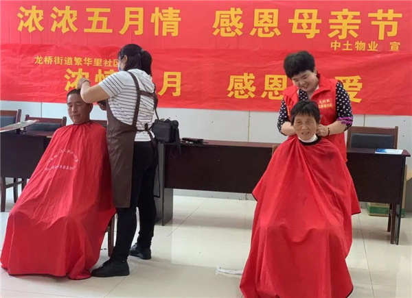 除了獻(xiàn)禮花束,春都華府、銀苑小區(qū)、宏苑小區(qū)等物業(yè)管理處還聯(lián)合街道、業(yè)委會、商家一同開展了拍照打卡、愛心義診、便民理發(fā)等活動,讓媽媽和她們的家人一同感受中土物業(yè)的別樣祝福。